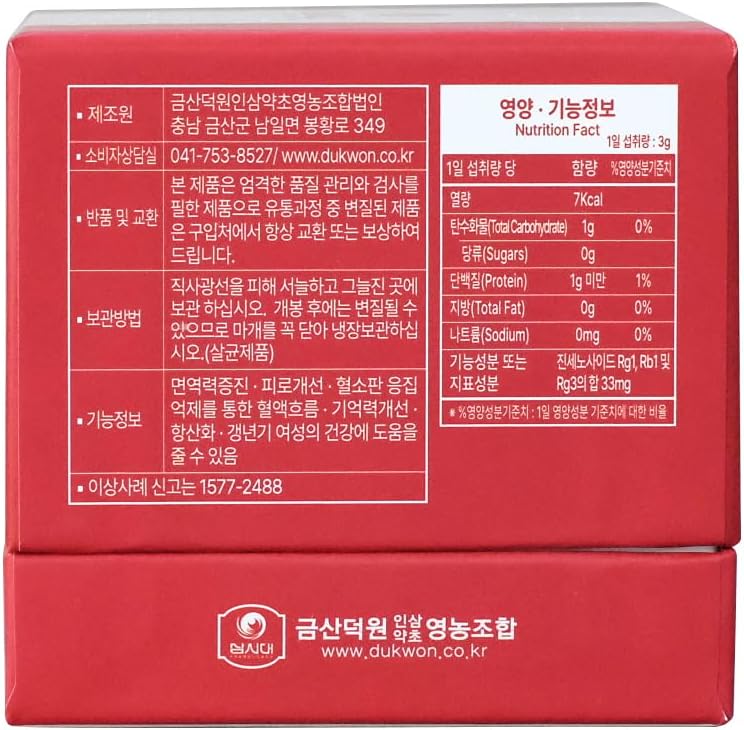 Made with 6-year-old Korean red ginseng roots, this formula combines 90% traditional red ginseng extract with 10% fermented red ginseng to support better absorption and bioavailability. Each 3 g serving delivers 3,000 mg of pure red ginseng extract and 11 mg of core ginsenosides (Rg1, Rb1, Rg3), giving you concentrated support for daily energy, stamina, immune health, and mental clarity — all without caffeine.