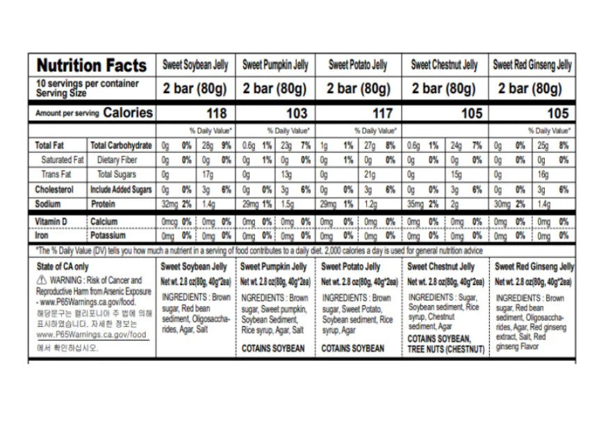젤라틴이 아닌 한천을 사용하고 모든 농산물은 국내산을 원칙으로 하며 무농약 단호박, 고 구마와 유기농 녹차분말로 만들었습니다.